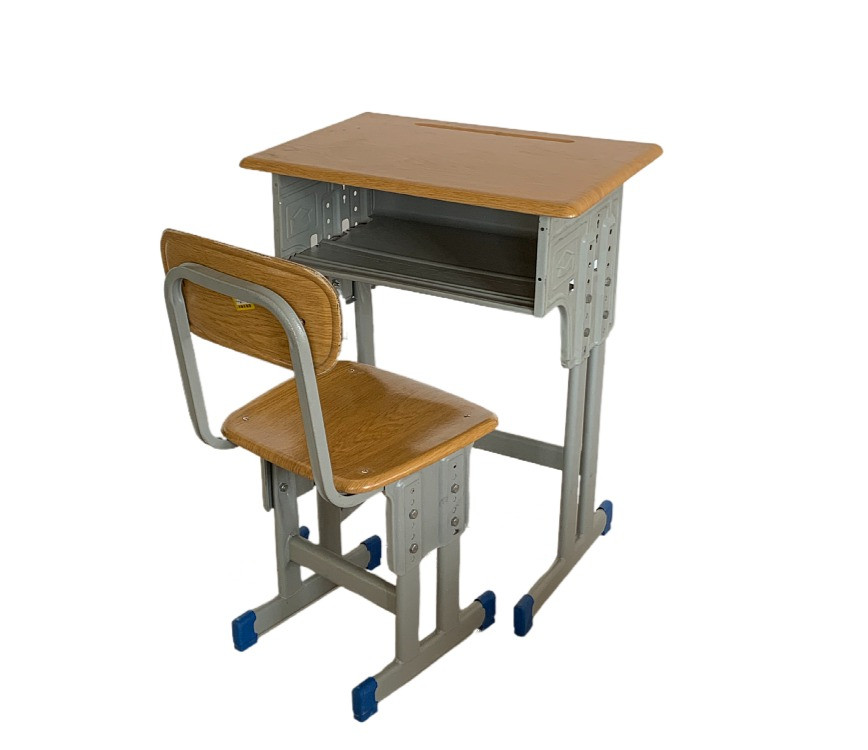 双柱单人课桌配椅子 颜色:灰皱纹色 规格:0.6*0.4*0.75米